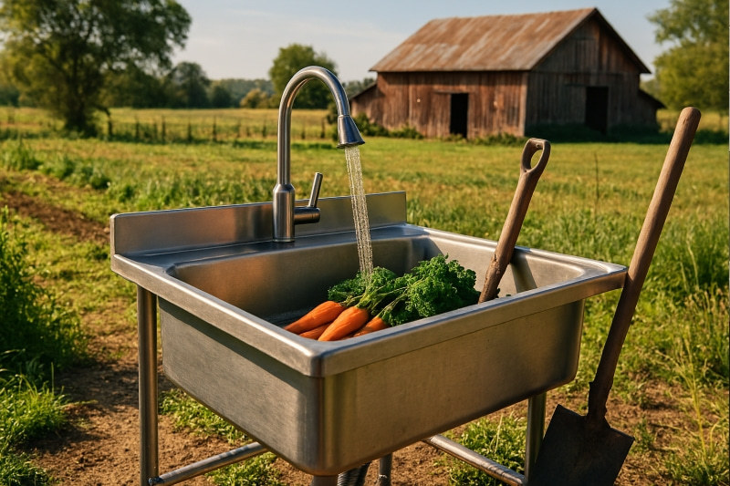 Stainless Steel Laundry Sink can be used for washing farm tools, vegetables, fruits, BBQ equipment, or as an outdoor utility water source.