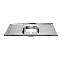 This double-bowl stainless steel sink is complete with a practical drainer, offering a versatile and efficient solution for any kitchen.