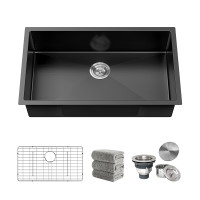 30" Black Workstation Undermount Kitchen Sink 16 Gauge Deep Single Bowl