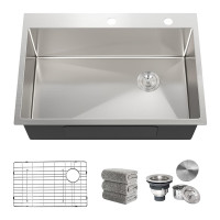 30"x22" Top Mount Kitchen Sink | 16 Gauge R10 Single Bowl Stainless Steel Sink & 4 Accessories